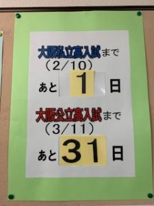大阪私立高校入試がとうとう明日となりました。今のところ明日の天気は良さそうです。できる限りのことを精一杯やって頑張って欲しいです。