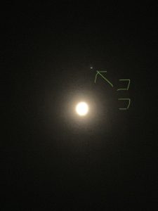 さて、本日未明から明け方にかけまして、月と木星、また土星の接近がありました。ニュースでは肉眼で可能とありましたので、少し期待して3時ごろに確認しました。少し薄雲がかかっている状態なので、最初は『月しか見えないか』と思いましたが、土星は残念ながら見えませんでしたが、木星は確認できました。